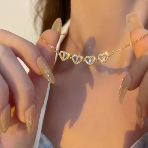 Collar Cuádruple Mágico: Trébol de la Suerte con Corazones