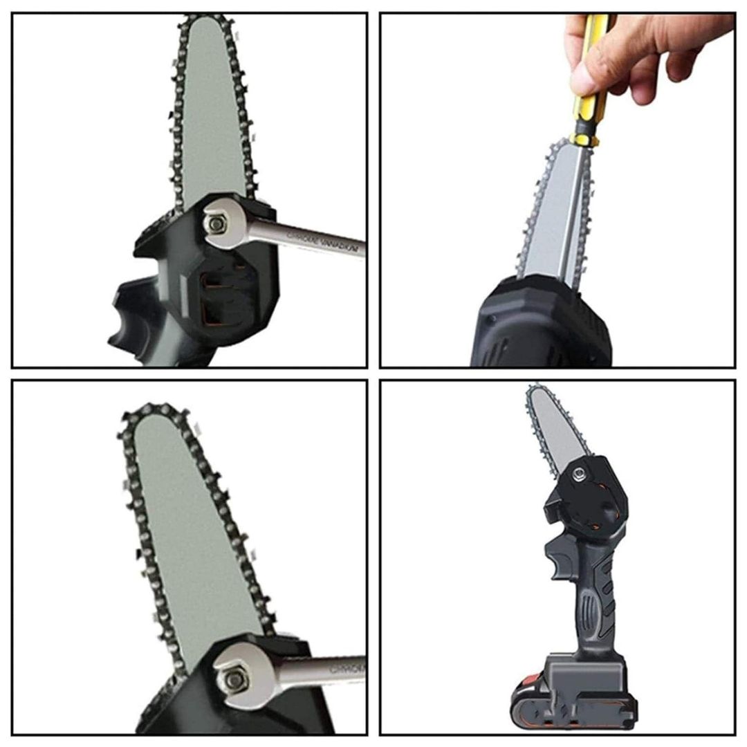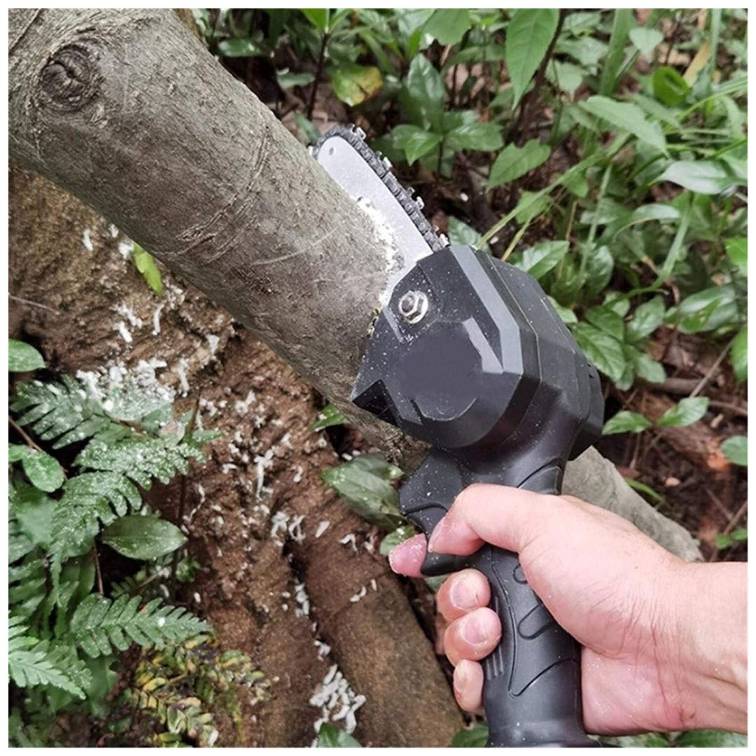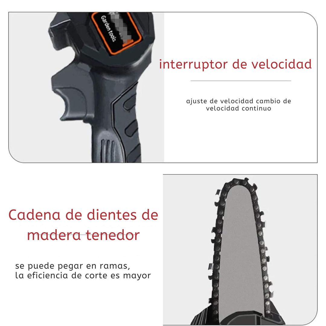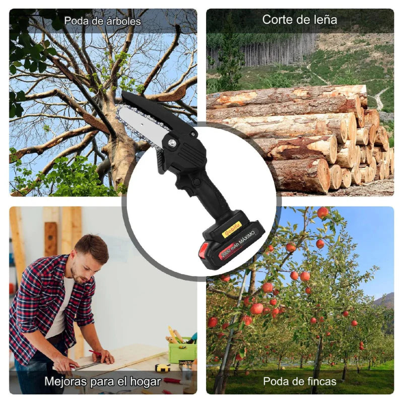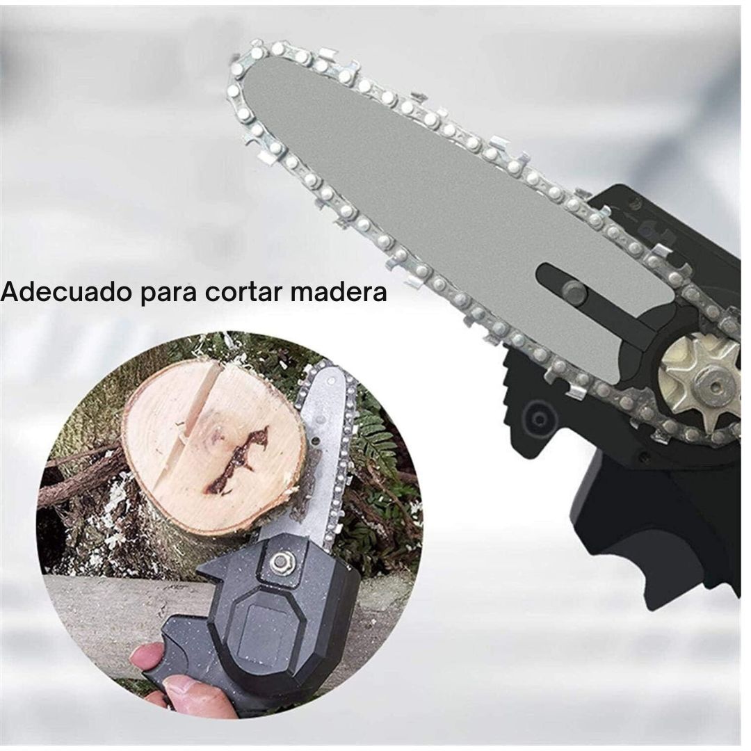 Equipada con un motor de cobre puro y una cadena de alta calidad, esta mini motosierra garantiza cortes suaves y precisos en segundos.